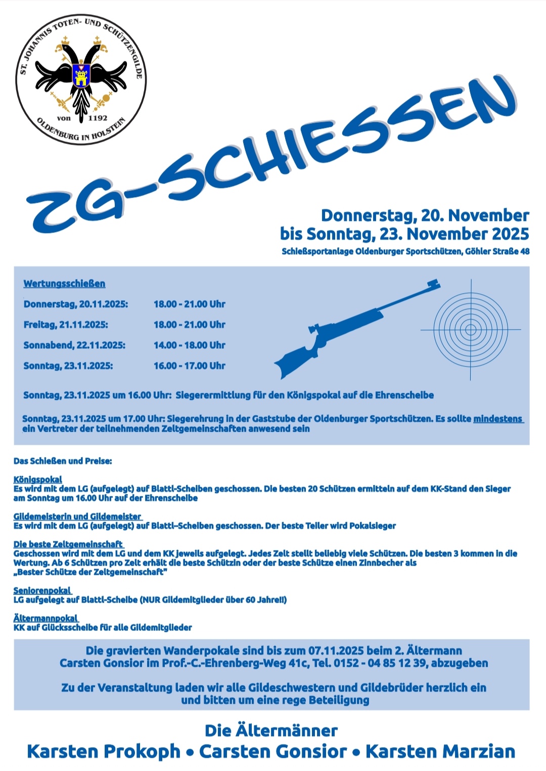 Bereits zum 49. Mal fand am 5. November das Stadt-Gildepokal-Schießen statt. Hierzu waren zahlreiche Schützen aus der Verwaltung der Stadt Oldenburg in Holstein und Mitglieder des erweiterten Gildevorstandes gegeneinander angetreten.