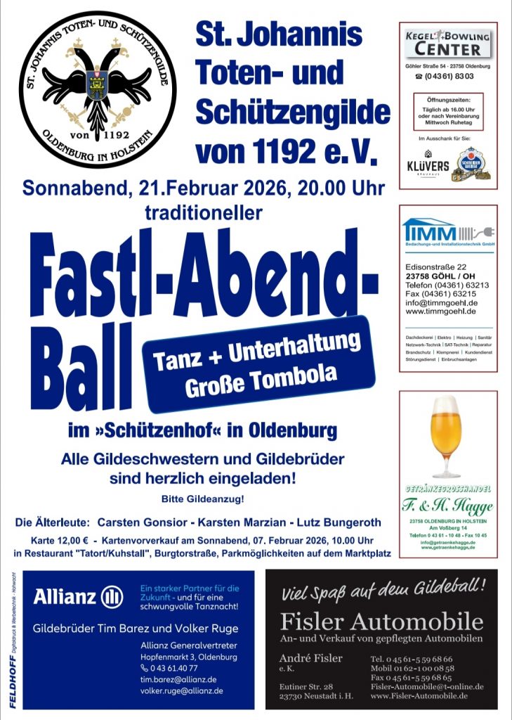 Liebe Gildeschwestern und Gildebrüder,wir laden herzlich zum diesjährigen Zeltgemeinschaftsschießenvom Donnerstag, 20. November, bis Sonntag, 23. November,in die Schießsportanlage der Oldenburger
